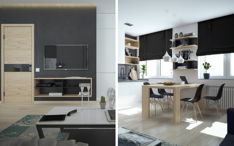 In a small apartment, it is necessary to use a minimalist approach. The fewer unnecessary things, the more organized the space will seem. Choose only the necessary furniture and decorations so as not to overload the apartment.
