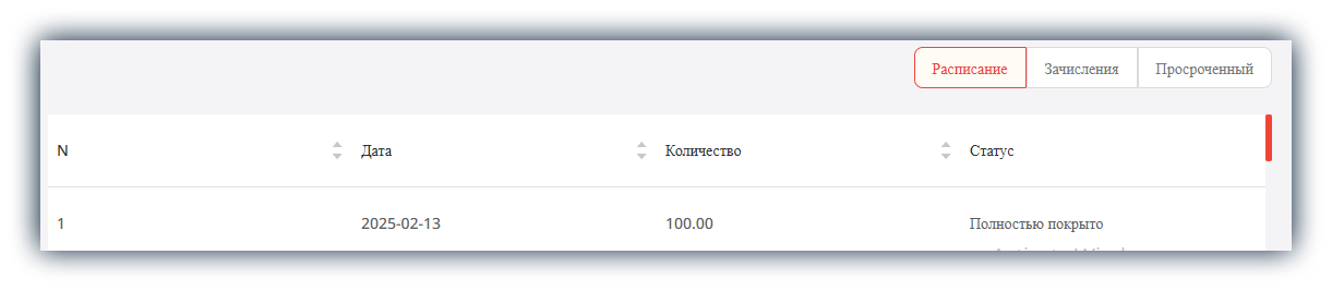 - Депозиты – дата ежемесячного платежа, произведенного арендатором;